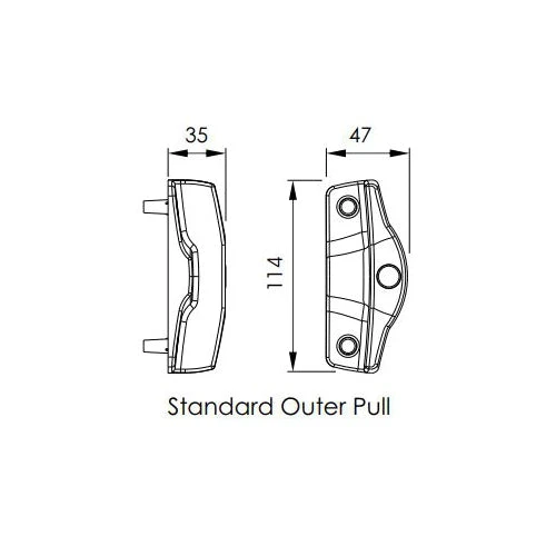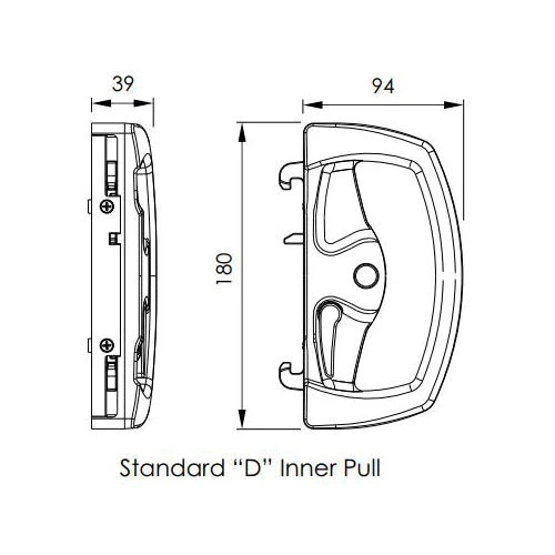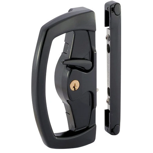 Reliable all-metal lock for aluminium sliding doors. Once the door is closed, the twin beaks are operated by key or lever to engage the catch plate.