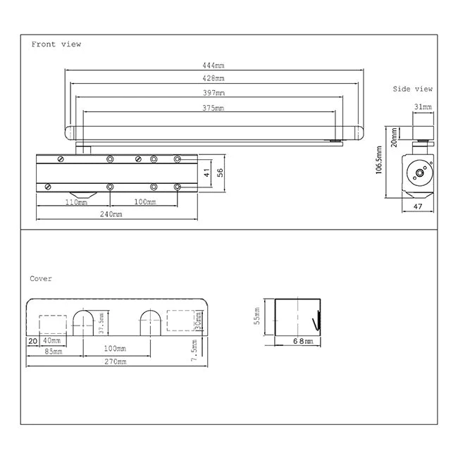 In contrast to a conventional rack and pinion door closer in a slide channel application, the linear cam action principle of the Briton 2700 Series is extremely efficient. The initial opening force decreases very rapidly as the door opens allowing, in particular, children and the elderly to overcome the closing power without any problem.