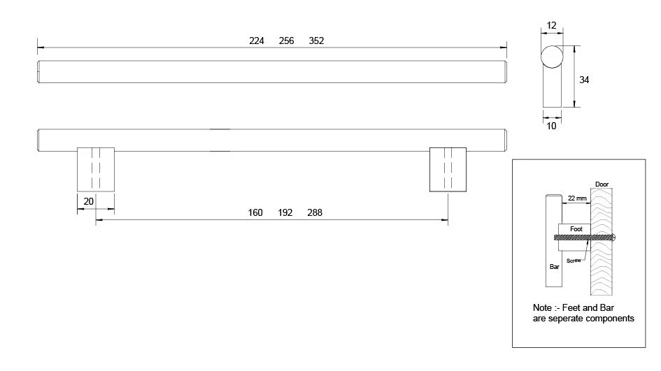 Kethy PS330 cabinet handle, available in various sizes & Finishes