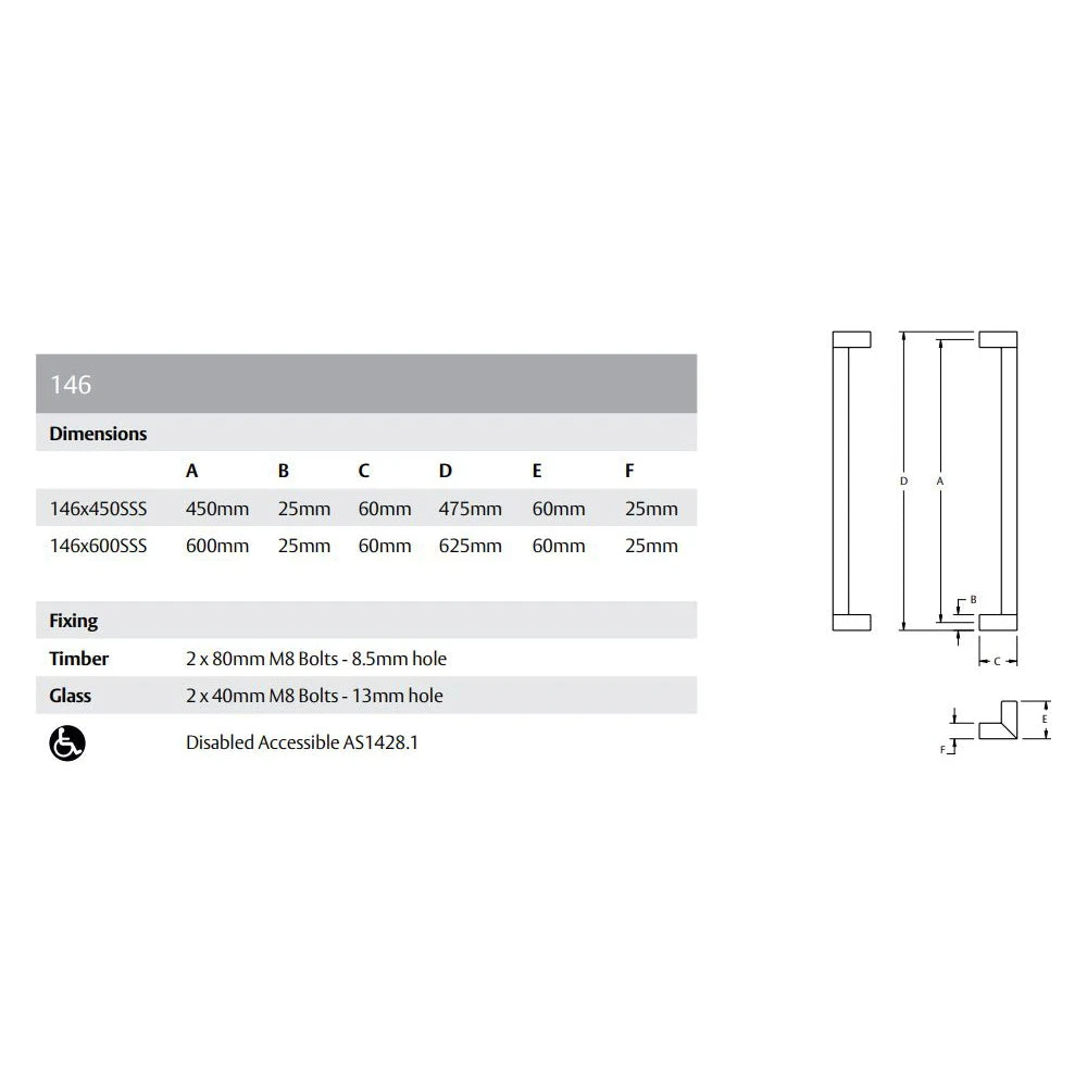 Constructed of 304 grade stainless steel, Lockwood Entrance Handles are suitable for use in external environments.