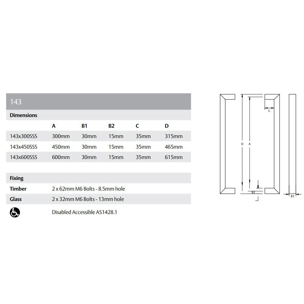 Constructed of 304 grade stainless steel, Lockwood Entrance Handles are suitable for use in external environments.
