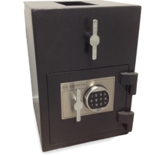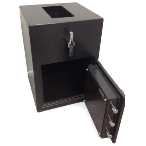 Using a unique top access rotating deposit shute, the TD Series deposit safes allow easy depositing, while making it very difficult to force open. Deposits are placed in the opening before turning the handle to transfer the deposit into the secure compartment below. Rotating deposit safes can be built into cabinets to allow deposits to be made through the counter top, making a clean and efficient installation.