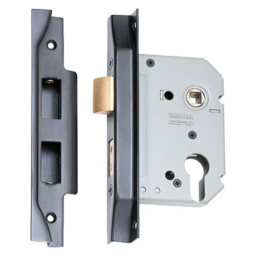 High Security. Solid brass face and striker plates. Available in 10 finishes. Reinforced steel pins. Reversible tongues. 13mm rebate. Tested over 130,000 cycles. 46mm and 57mm backsets. Fitting instructions supplied.